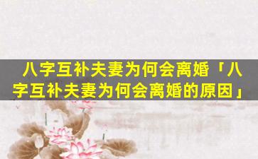 八字互补 🐠 夫妻离婚 🦈 的原因
