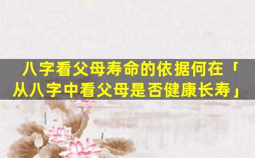 八 🌿 字看父 🐞 母寿命的依据 💐