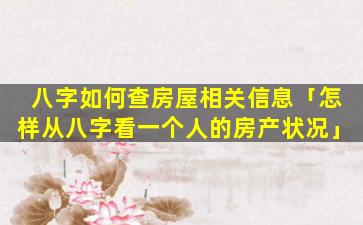 八 ☘ 字看 🌷 房屋 🌻 信息