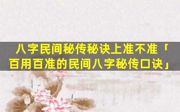 八字民间秘 🌳 传秘诀的准确性存在争议。