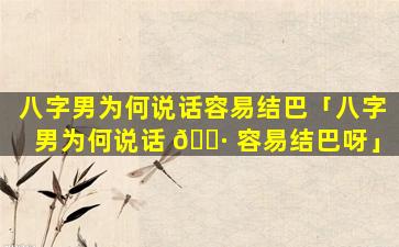 八 🌵 字理论中没有关于八字男说话容易结巴的明确论述说话结巴 🐼 。通常是由以下因素引 🐒 起的:
