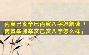 丙 🐞 寅辛卯辛 🕷 亥己 🍀 亥八字