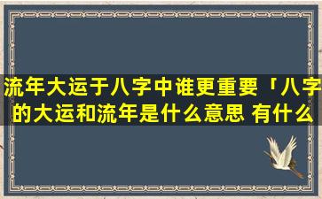 谁更重要?通常来说,大,运,比流年更重要因为大运会持续十年对人 💐 生的各个方面都有重大影响流年。虽,然。代表着当前一年的运势但其影响力不如大运持久和广泛
