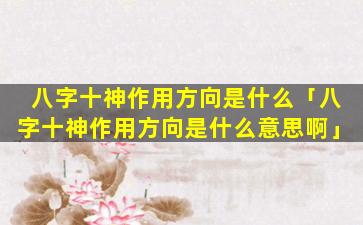 八字十神作用方 🦢 向 🐛 是指八字中不同十神对命主产生的 🦉 影响方向,具体如下: