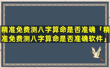 抱歉,我不确定您所说的“精 🐡 准免费测八字算命是否准确软件是”什么意思您。能澄 🐴 清一下吗?