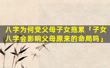 在八字命理学中,父母和子女也是影响命主的运 🐘 势的重要因素。如,果八字中存在以下情况则命主可能受到父母或 🐦 子女的拖累: