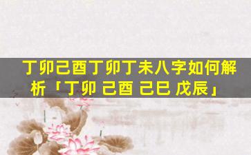 解析 🦄 八字 🦊 丁卯己酉丁卯丁未