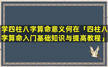 四柱八字算命意义 🐅 何在