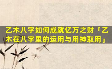 乙木八字成 🌻 就亿万 🕷 之财的条件