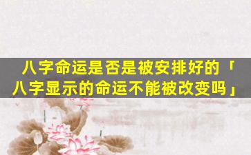 八字命运是否是被安 🌷 排好的是,一 🐈 个见 🐼 仁见智、没有科学共识的问题。