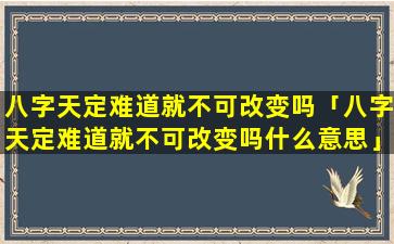 “八字天定难 🦈 道就不可改变吗”这句话的意 💮 思是: