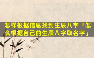 根据 🦢 生辰八字取 🍁 名的步 🪴 骤: