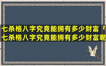 因此,“七杀格”八,字,的财富运势具 🕸 体如何需要具体分析八字五行生克 🐈 制化关系无法笼统判断有多少财富。