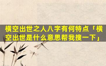 横空出 🐱 世之 💮 人八字 🍀 特点: