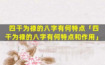 四干为禄的 🐋 八 🐕 字特 🌹 点