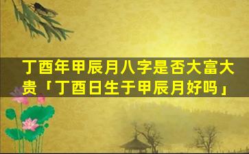 丁酉年甲辰月八字是否大富大贵,需,要根据具体出生日期和时辰进行命理分析无法 🕊 单凭年月、柱判断需要。提,供。完整的出生年月日时才能进行准确的八字测算