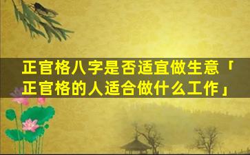 正官格 🐴 八字适宜 💮 做生 🦈 意的特点: