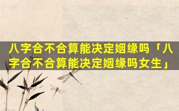 在传统命理学 🦈 中 🌼 ,八,字合不合是用来衡量两个人姻缘的一种方法但它并不是决定因素。