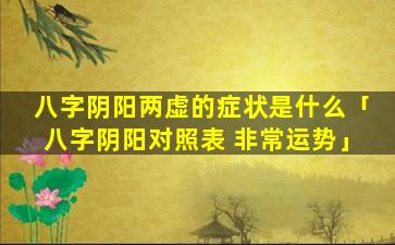 八字 🐬 阴 🐱 阳两虚的 🐼 症状