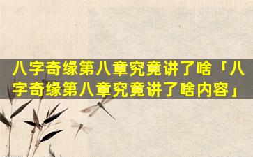 八 🦟 字奇缘的第八章 🐵 题为 🌺 “天机已泄”,讲述了以下故事: