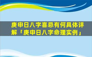 庚申日 🍀 八字 🌸 喜 🐼 忌详解