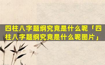 定义四柱 🐺 八字题纲是指概括四柱八字命理学的核心原理和准则是学,习命理学的 🐎 基础入门资 🐅 料。