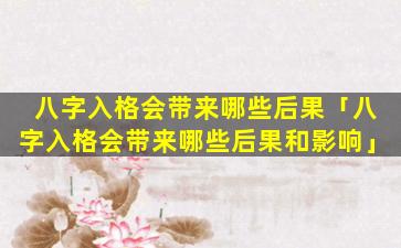 八字入格带来的 🕷 后果(仅在命理学 🐋 中认为)