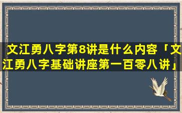 文江 🐵 勇八字基础讲 🌳 座第 🐧 一百零八讲