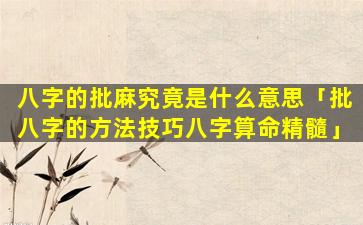 “八字 💐 的批麻”是一个不恰当的说法,在命理学中没有这个术语。因,此这个。问题无法回答