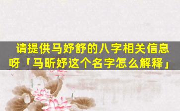 整体寓意:“马 🐧 舒妤”这个名字的寓意可以理解为: