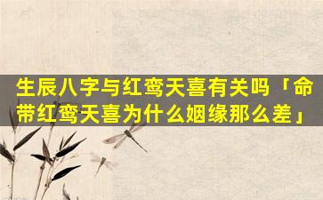 八字命理中,出生时辰也会影响姻缘。如,果出生时辰。与红鸾天喜相冲也会减弱红鸾天喜的 🍁 吉利度