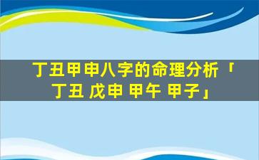丁 🌲 丑甲申八字 🐠 命理分析 🐟