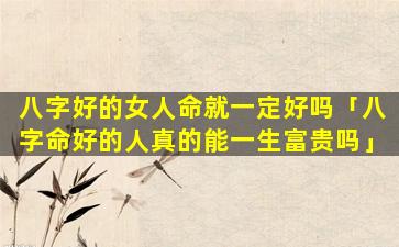 有人认为,八,字命好的人往往会一生富贵因为他们具备了获得财富和成功的有利条件。也有人认为,命,运,并。非一成不变八字只是提供了参考 🐟 人的努力和选择也起着关 🐱 键 🌼 作用