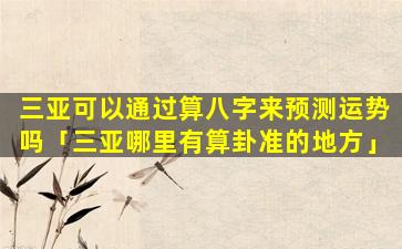 在三 🦟 亚算 🐅 八字预测运势