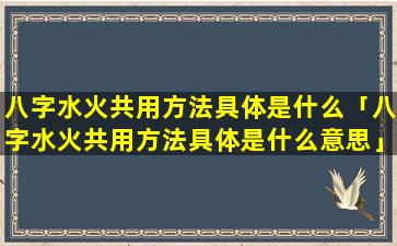 在八字命理学中,“水火共用”是,一种特殊的 🕊 方法用于处理同时出现水和火两种相反五行的情况。