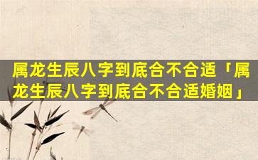 对于属龙的人来说,生,辰八字的合适与否对婚姻的影响 🕸 因人而异需要结合其他因素综合考虑 🦋 。