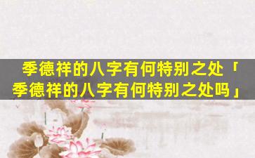 特殊之处:季 🍁 德祥的八字中有以下几个特殊之 🐋 处 🦁 :