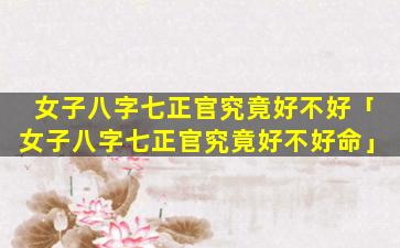 女 🦋 子八字七 🐵 正官 🌷 是否好命