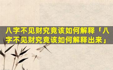传 🐼 统八字 🦆 学中八字“不见财”的解释