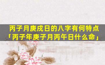 丙 🐕 子月庚戌 🐅 日八 🐠 字的特点: