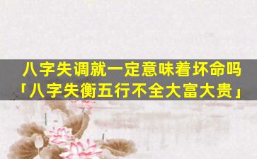 不,八字失调 🌸 不一 🦊 定意味着坏命。