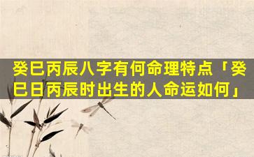 癸 🐧 巳丙 🌻 辰 🌼 八字命理特点: