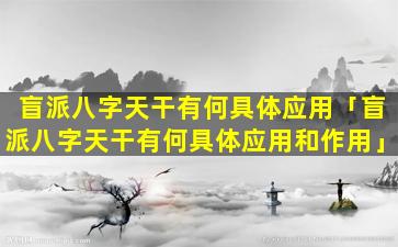 盲派八字天干的具体应用和作用涵盖了生克制化、定、吉、凶断性 🕷 格应期断验等方面,为预测个人运 🍀 势提供了重要依据 🍁 。