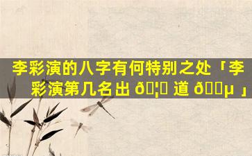总体来看,李,彩,演,的,八字特点是身旺财弱性格稳重踏实但略显倔强事业运平淡感情运竞 🕊 争多健康运方面需要注意脾胃健康。具体,运。势走向需要结合时柱进行进一步分析