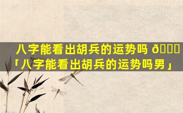总体来看 🌼 ,胡,兵 🐅 ,的,八,字属于身弱偏财格命中财运亨通但早年运势较为平 🐟 稳中年运势有波动晚年运势较好。