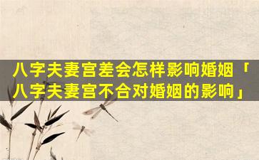 八字夫 🌷 妻宫 🐝 不合对婚姻的影响