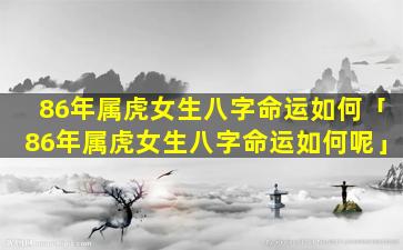 综合来看,86年,属,虎,女,生 🦁 八字命运总体尚可性格坚毅事业运势不错但感情运势较为坎坷需要多加注意。通过 🌳 把握机遇、提,升,自。身能力和修心养性可化解不利因素创 🌷 造更加美好的未来