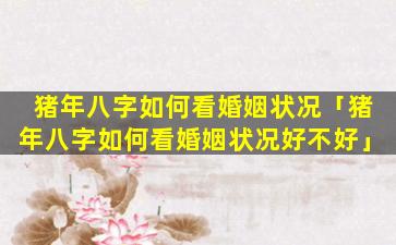 猪 🦋 年八字 🦋 看婚姻 🌼 状况