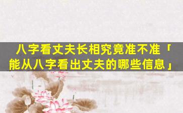 综合来看,八,字看,丈夫长相有一定的可参考价值但其准 🌸 确性并不绝对需 🦉 要结合其他因素综 🐎 合判断。