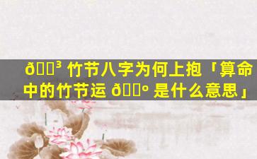 在算命学中,竹,节,运是指一个人的命运会在特定年龄段出现重大起 🦅 伏和转变就像竹节 🐘 一样有明显的分段。